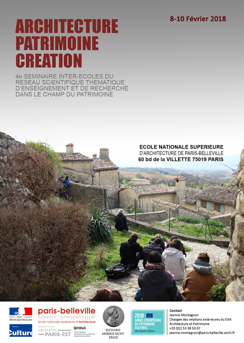4ème séminaire inter-écoles du réseau scientifique thématique d’enseignement et de recherche dans le champ du patrimoine, à l’ENSA de Paris-Belleville.