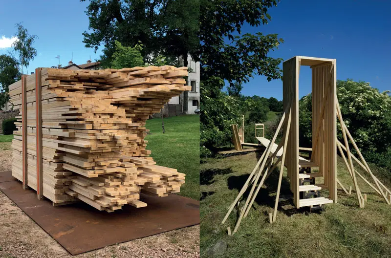 Un groupe d’étudiants de Master de l’Ecole Nationale Supérieure d’Architecture de Saint-Etienne a conçu, dessiné et fabriqué deux refuges de lecture et un chemin d’écriture. Préparés aux Grands Ateliers de l’Isle d’Abeau, ils sont installés à la Chaise-Dieu. Des étudiants de l’Ecole Normale Supérieure de Lyon ont participé au parcours de formation et de recherche « Ecriture et Architecture » et ont collaboré à l’écriture de ces espaces.