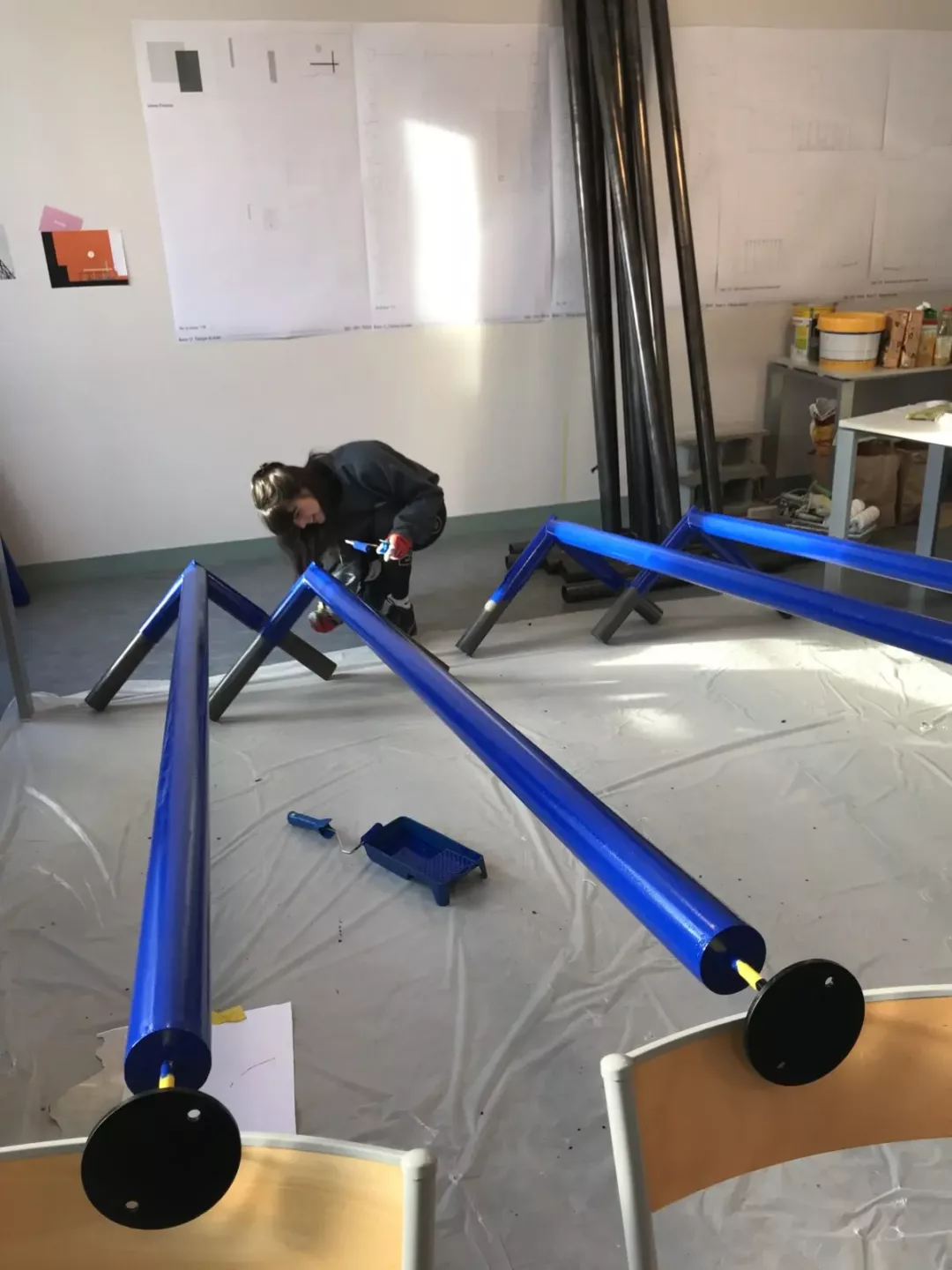 L’échelle 1/1, est abordée à travers des projets conçus, dessinés et fabriqués par les étudiants eux-mêmes.