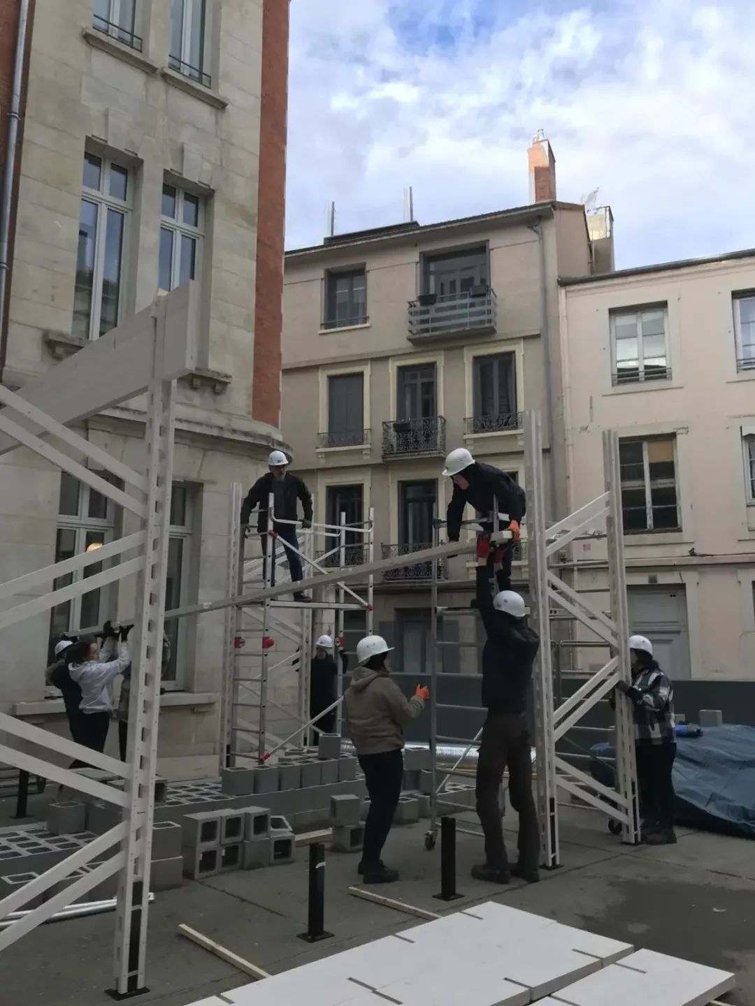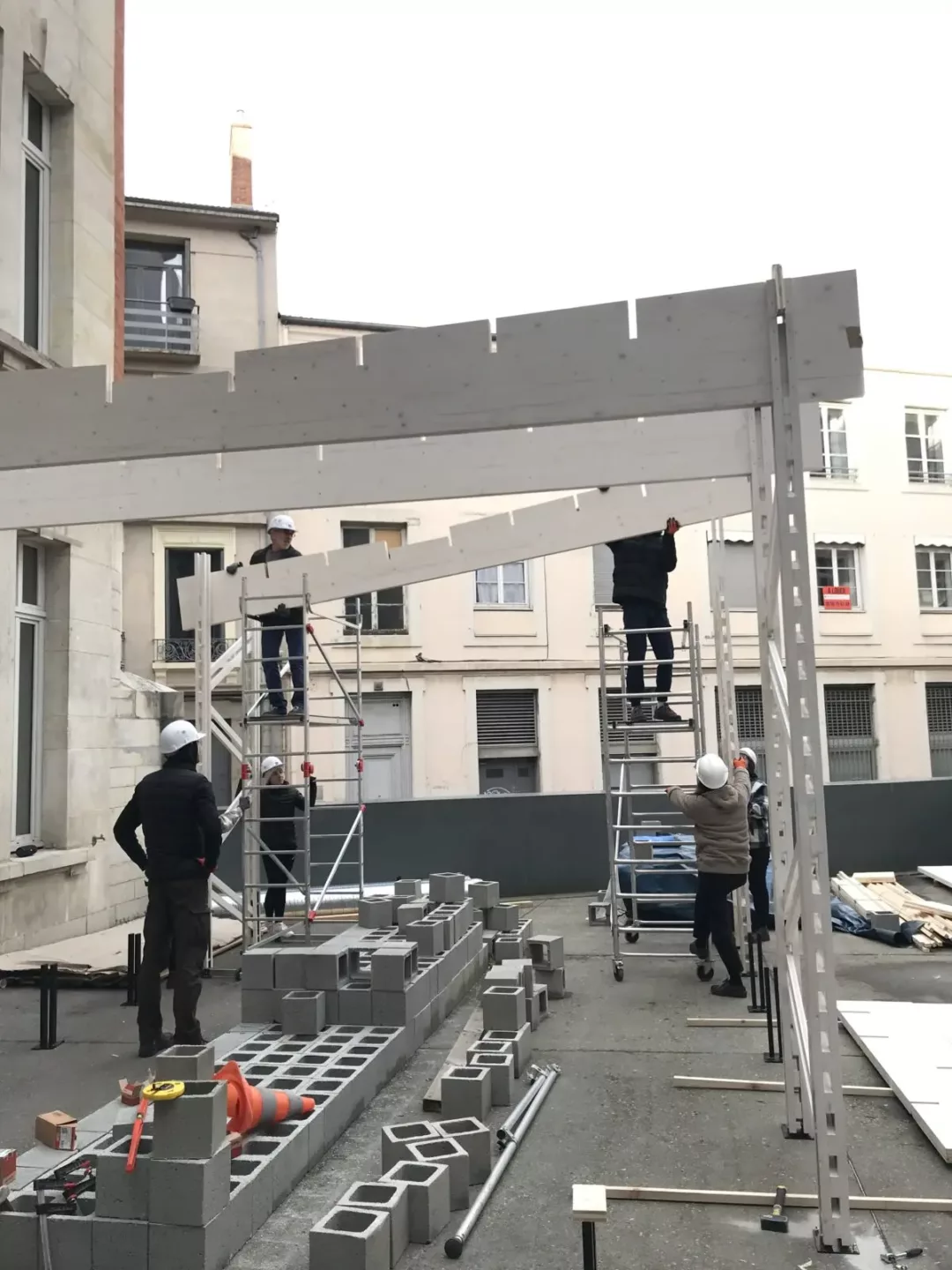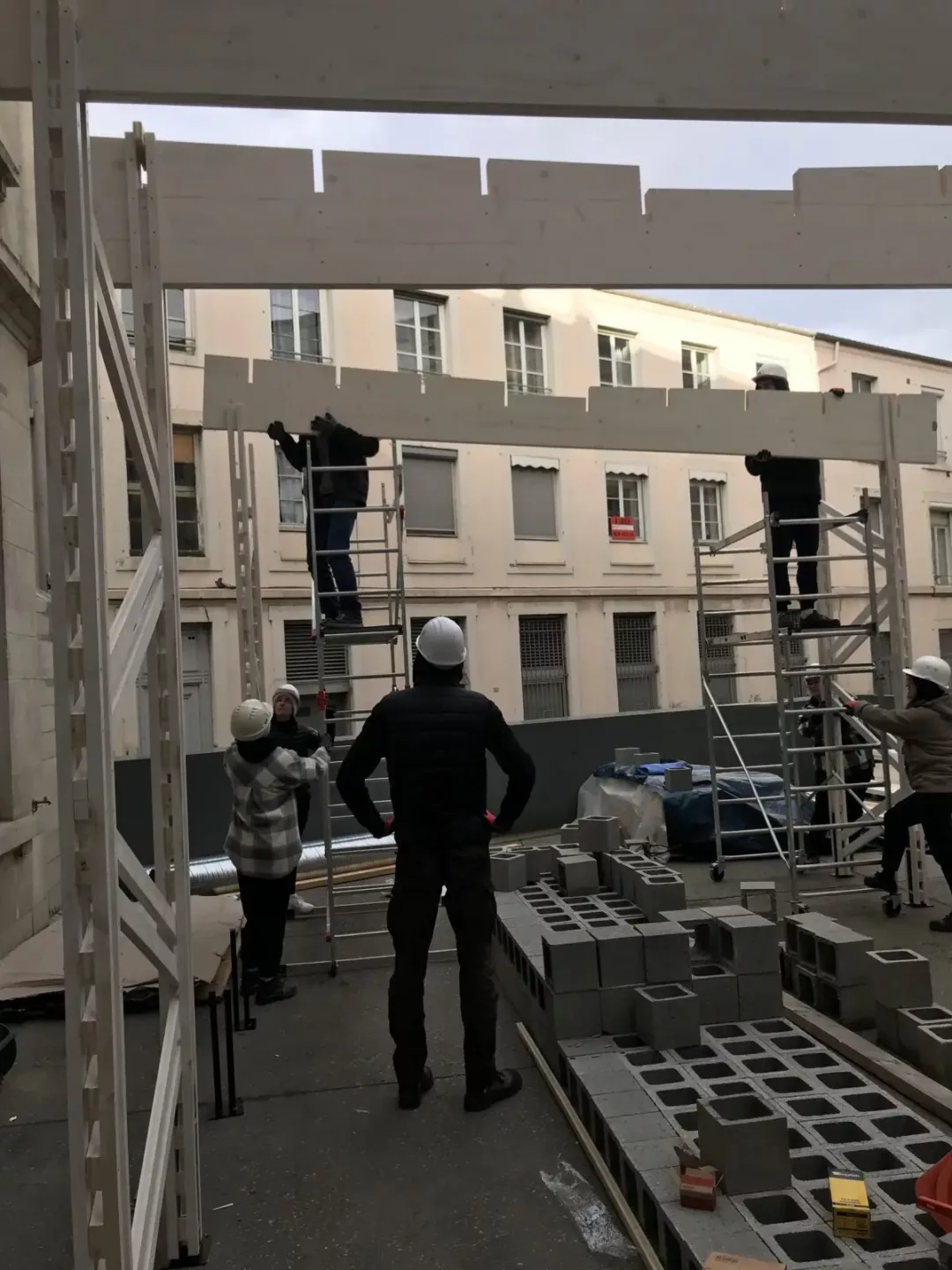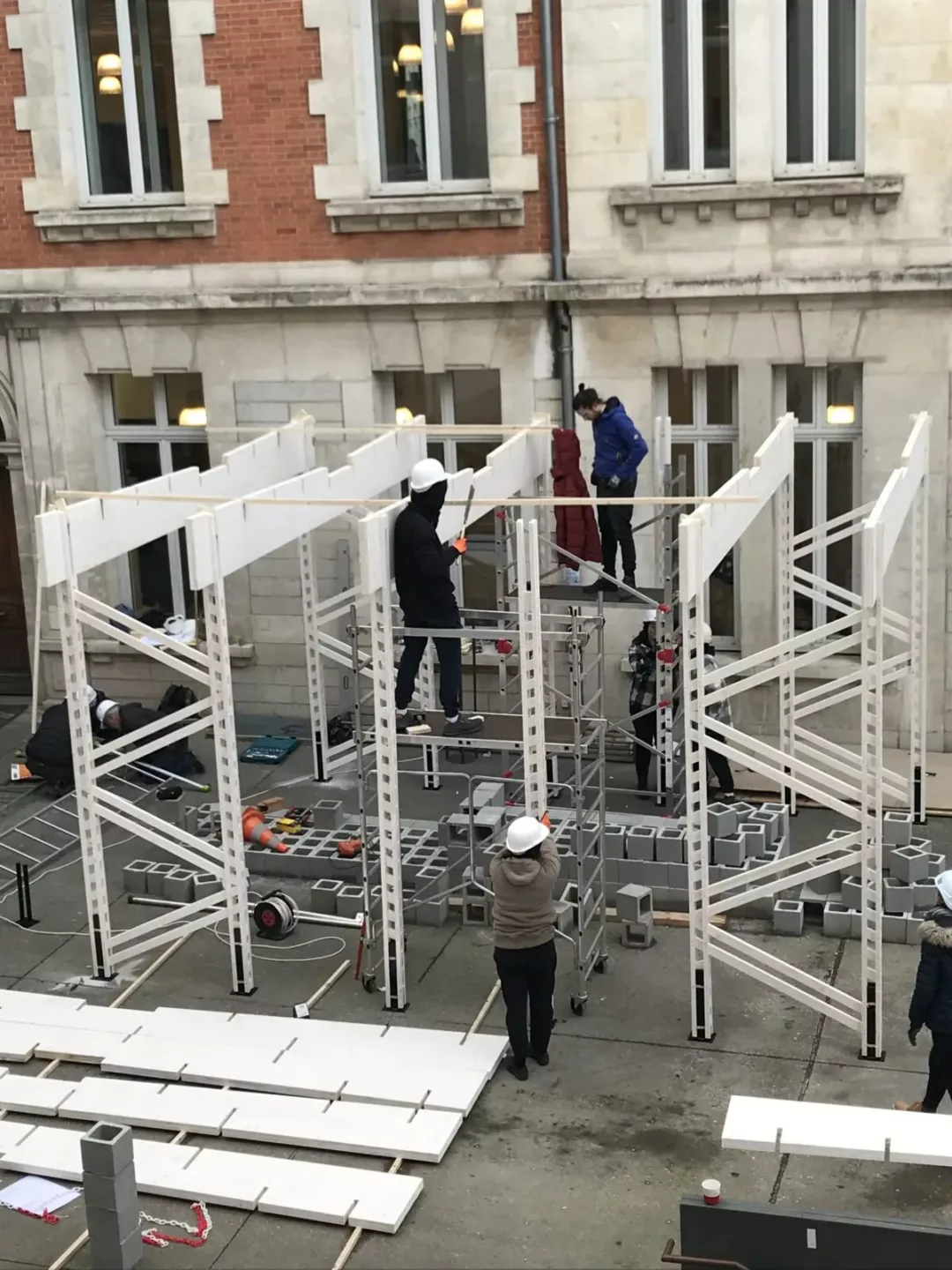 Les étudiant.es de l’atelier de Master 1 FACT : La fabrique du projet, porté par Thierry Eyraud, Laurent Chassot et Stéphane Grandgirard, ont conçu et fabriqué aux Grand Ateliers de l’Isle d’Abeau, le module Échelle 1/1 « Empreintes « . Le module a désormais pris place dans la cour de l’ENSASE.
