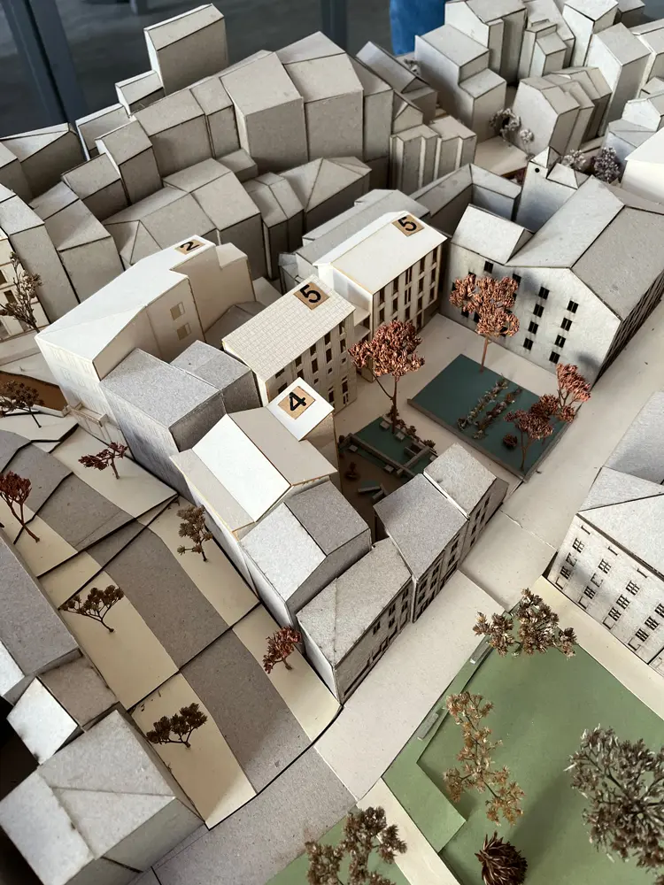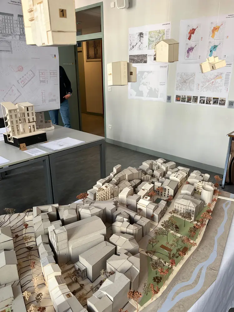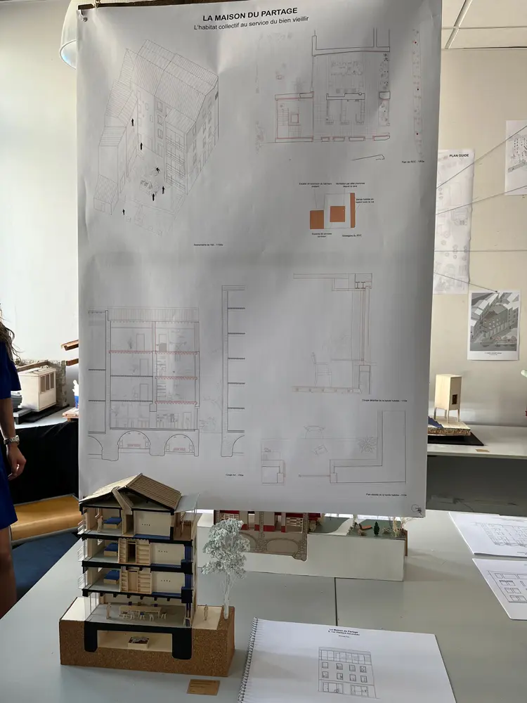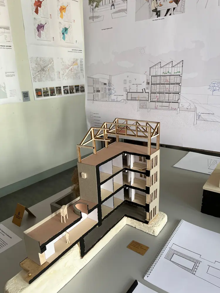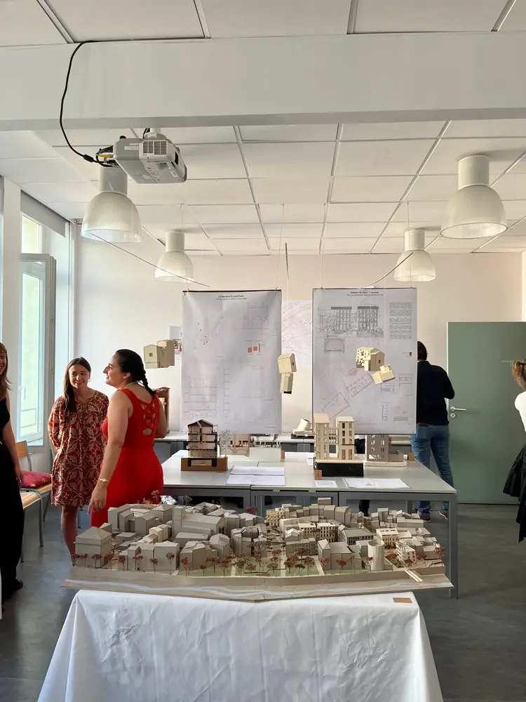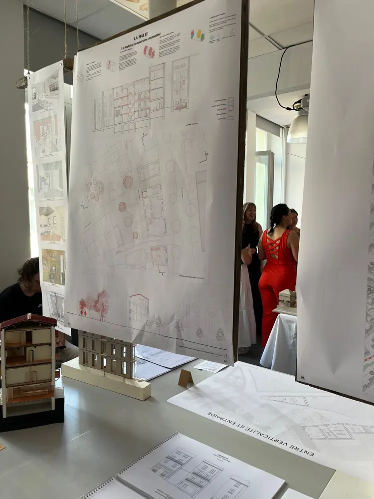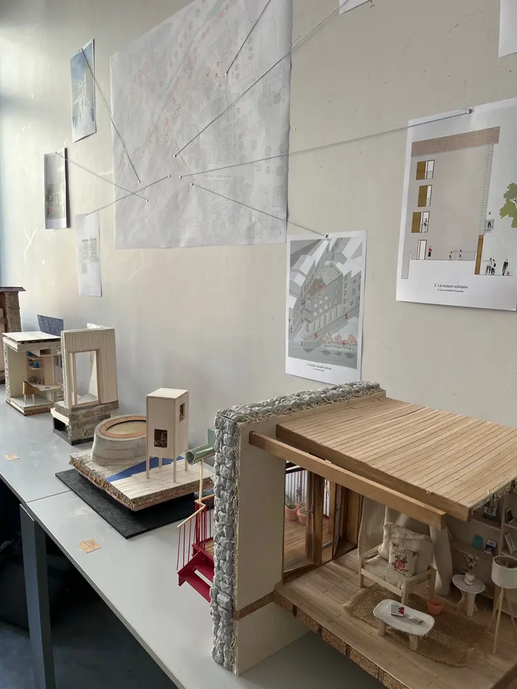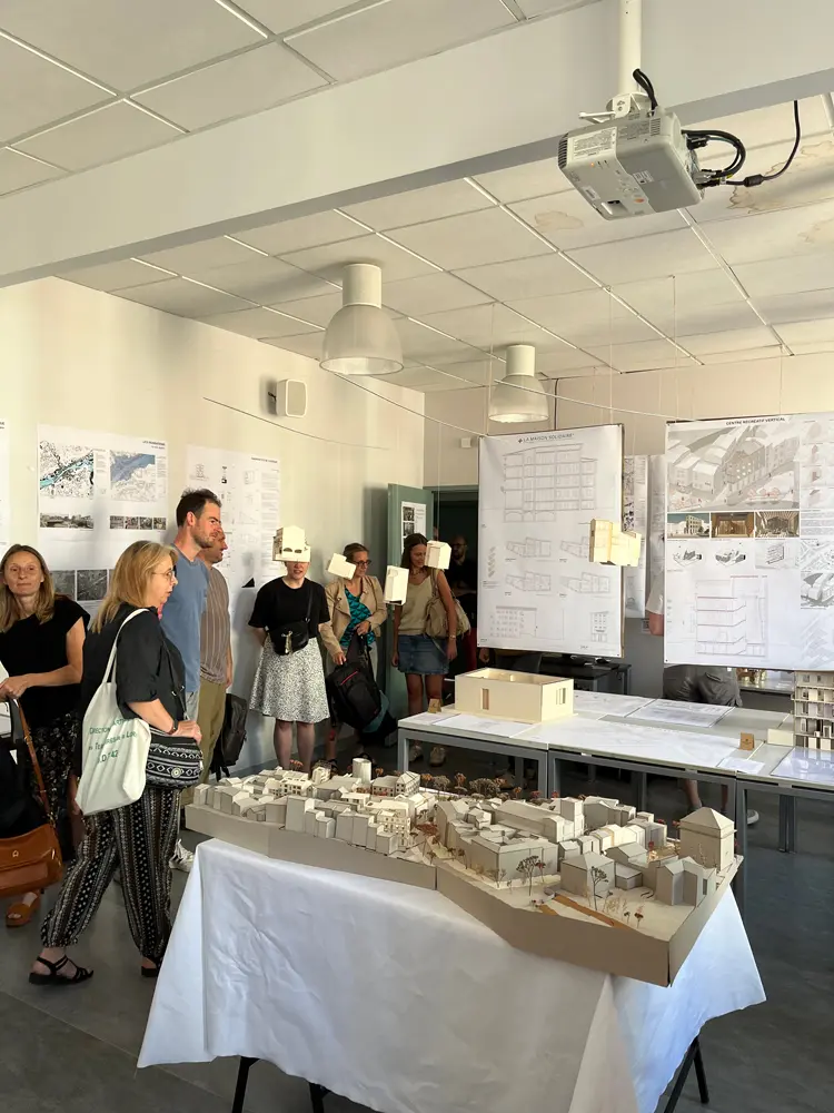 En parallèle, par des échanges avec des acteurs du territoire et des méthodes d’investigation variées (arpentage, dessin, recueil de données…), ils ont tenté de saisir l’histoire et les dynamiques contemporaines de la commune et plus largement de l’agglomération. Ce travail a permis de constituer un réseau de projets en dialogue avec les besoins où sont accueillis et valorisés le déjà-là : le patrimoine bâti et paysager, les initiatives solidaires et le vivant, humain ou non.