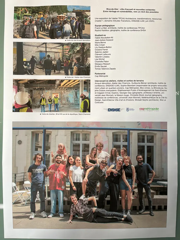 Cette année, dans le cadre d’un partenariat avec Cap Métropole, les étudiant·es ont pu investir des immeubles vacants du centre historique de Rive-de-Gier, par un travail d’enquête, d’inventaire et de repérage des ressources matérielles et immatérielles.
