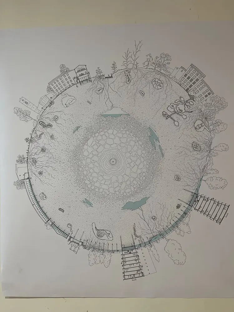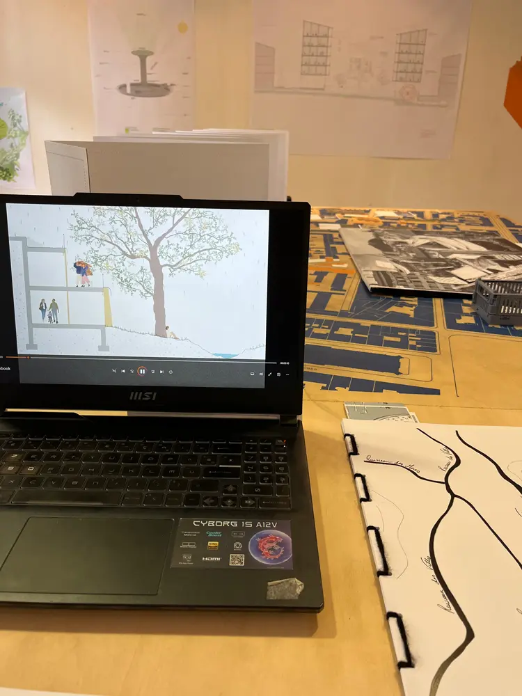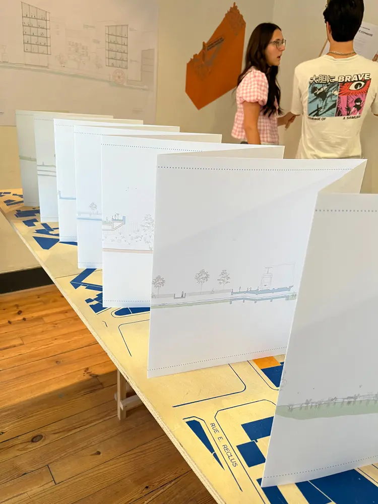 Dans le travail exposé ici par dix étudiantes et étudiants de Master1 de l’ENSASE, l’eau est centrale : quelle place peut prendre le ruissellement, le stockage de l’eau et ses usages dans l’environnement urbain? comment faire de cela des programmes d’architecture ? comment penser la ville par ces prismes ?