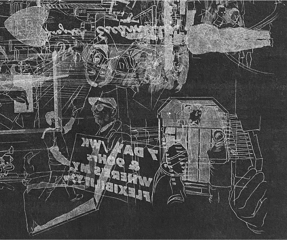 Les artistes activent ainsi des protocoles graphiques à partir de sources hétérogènes — « bases de données » matérielles ou immatérielles, images d’archives, iconographies médiatiques, relevés textuels et linguistiques, données scientifiques, sonores, spatiales ou architecturales — qu’il s’agit de faire travailler, de reprendre en main et de reconsidérer par le geste scripteur.